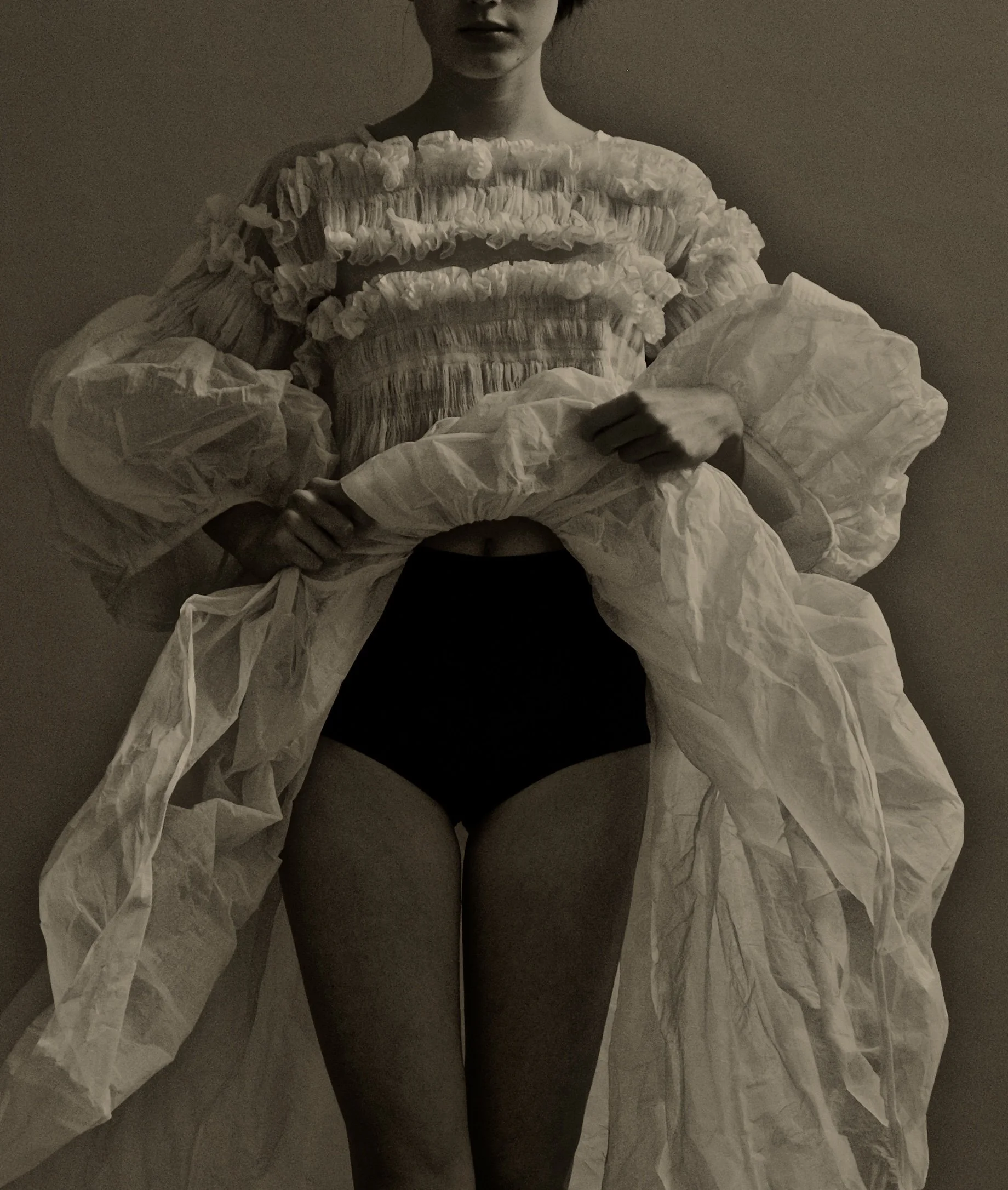 Following an early exhibition “Dress Portrait”, the idea of shooting fabrics, landscape and nature together seemed to make sense. Watching a seed or an idea growing and how they travel through different stages and develop into something unexpected.