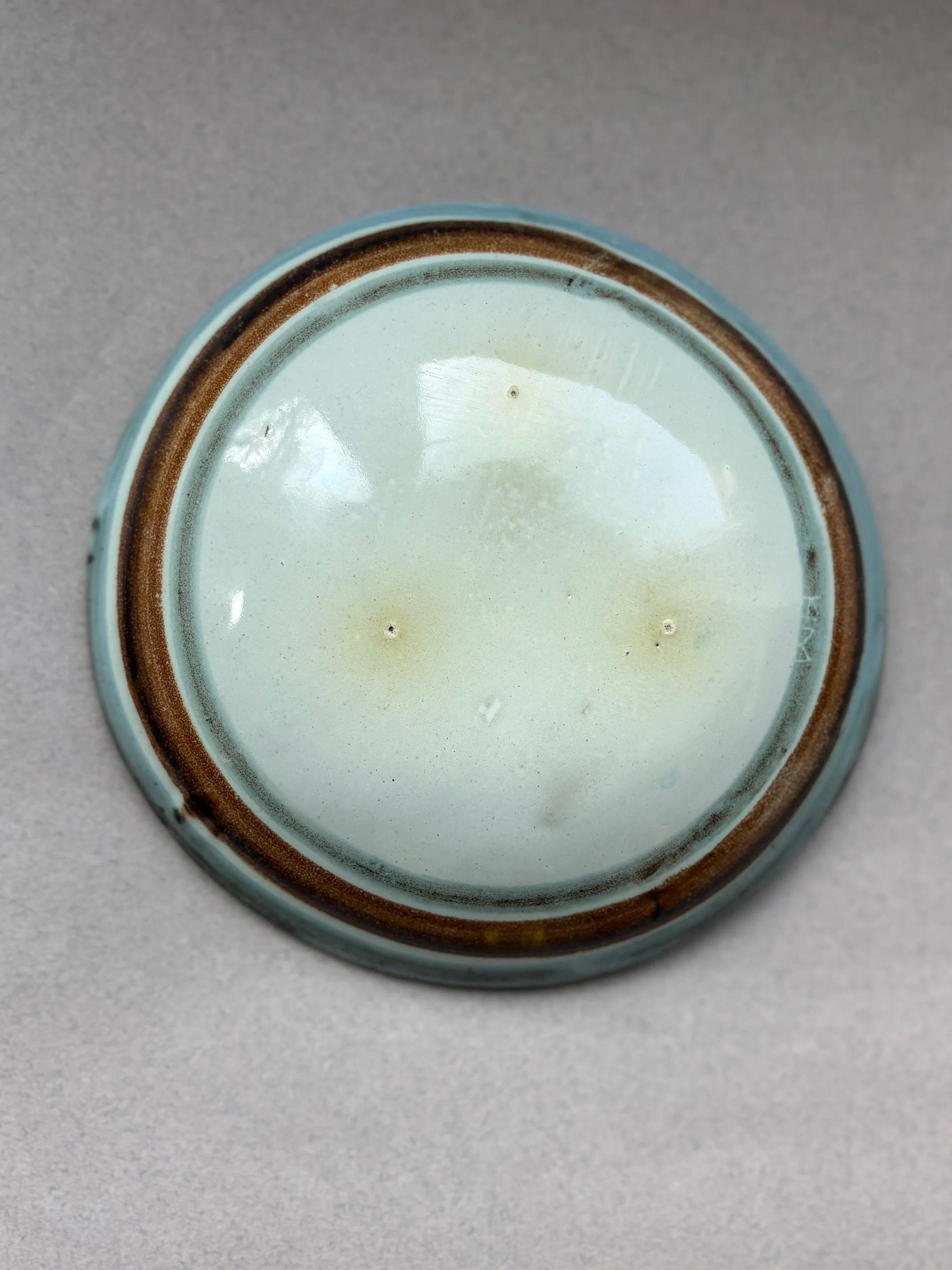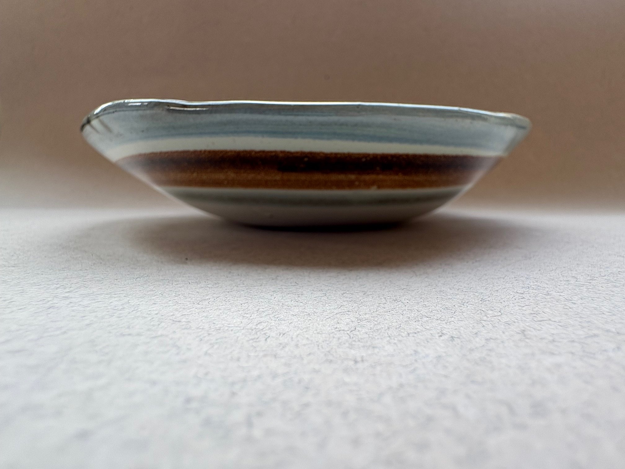 hand built from red terracotta clay and biscuit fired. Tin glazed and decorated using natural metal oxides.