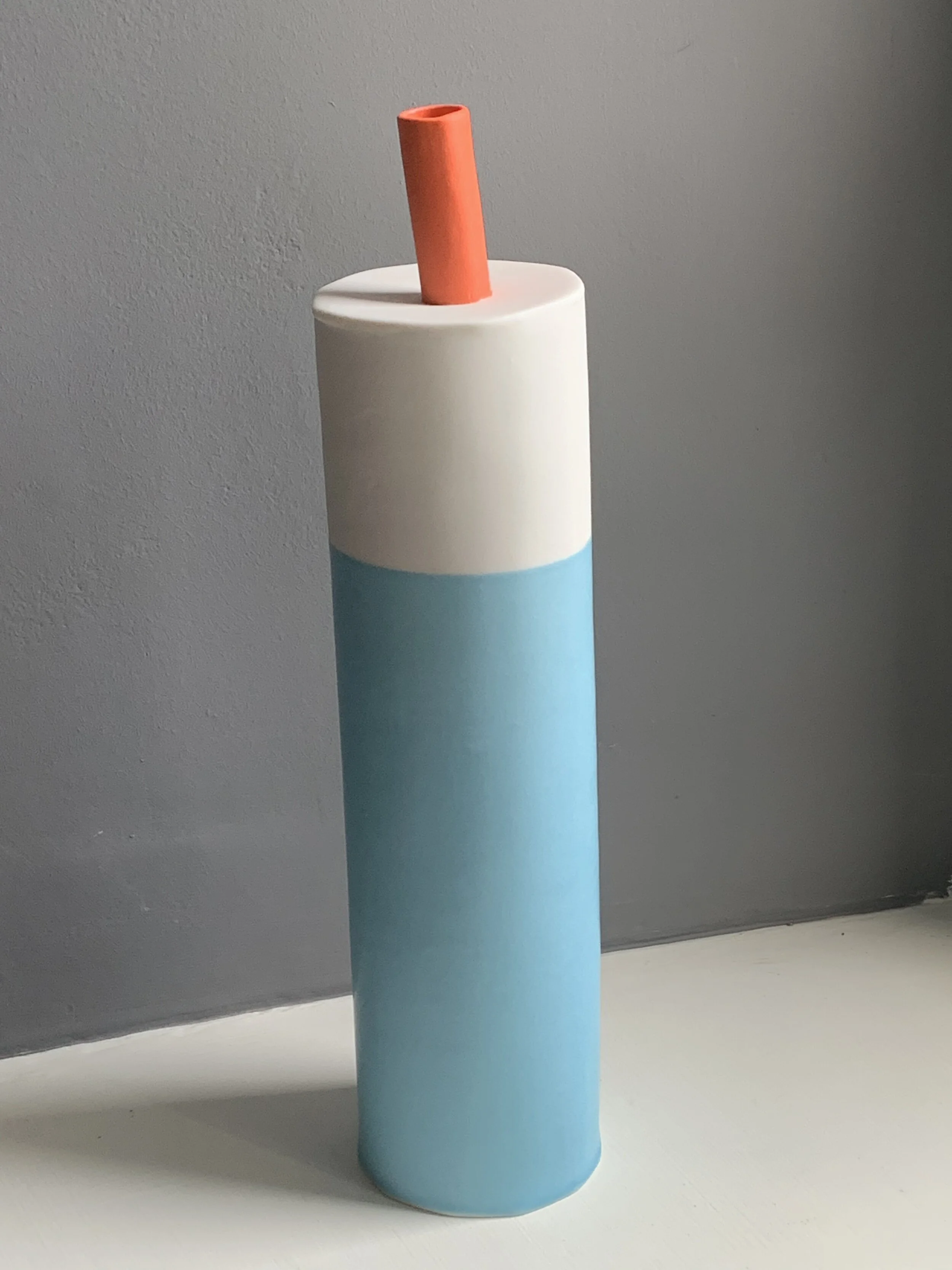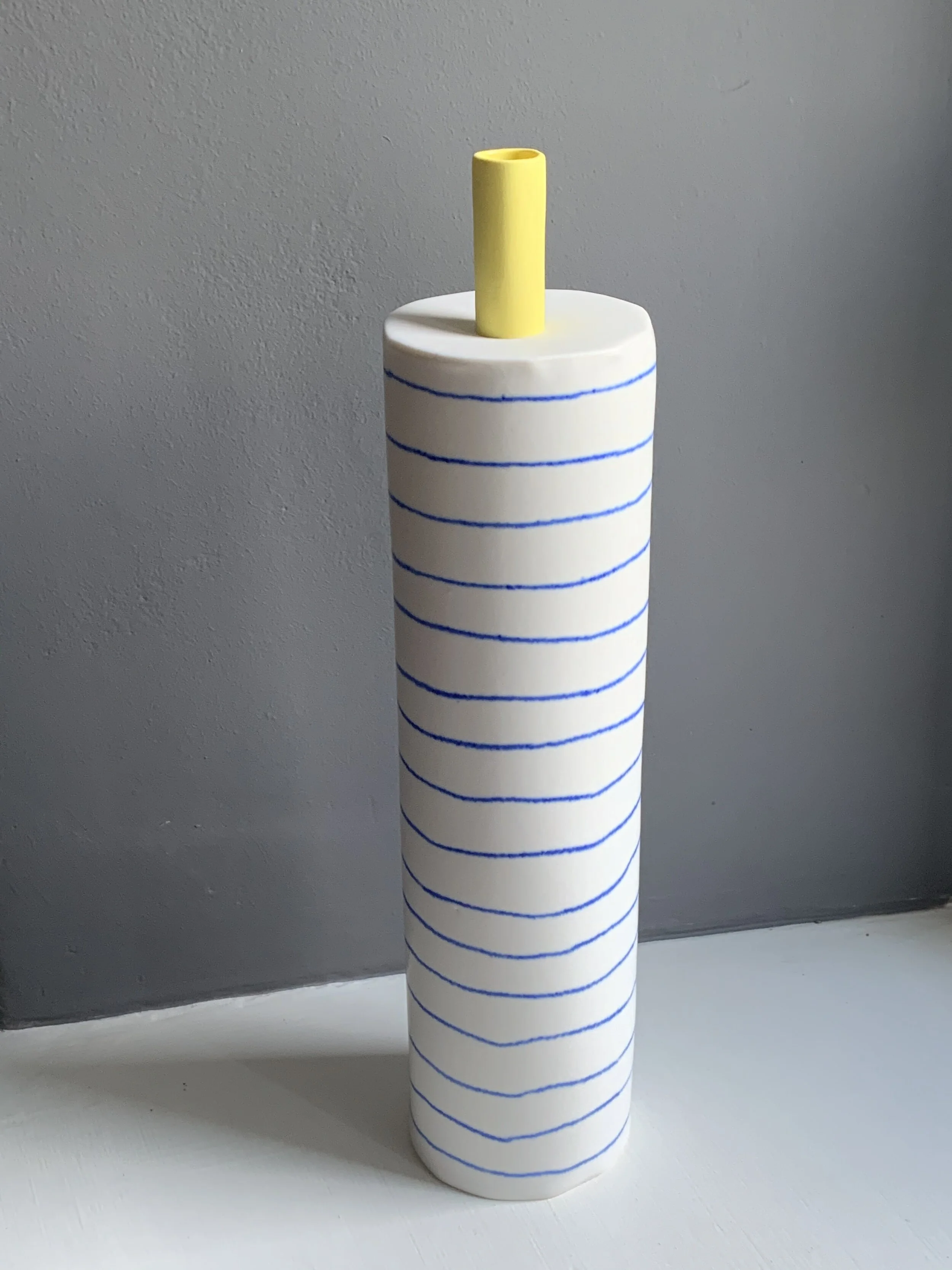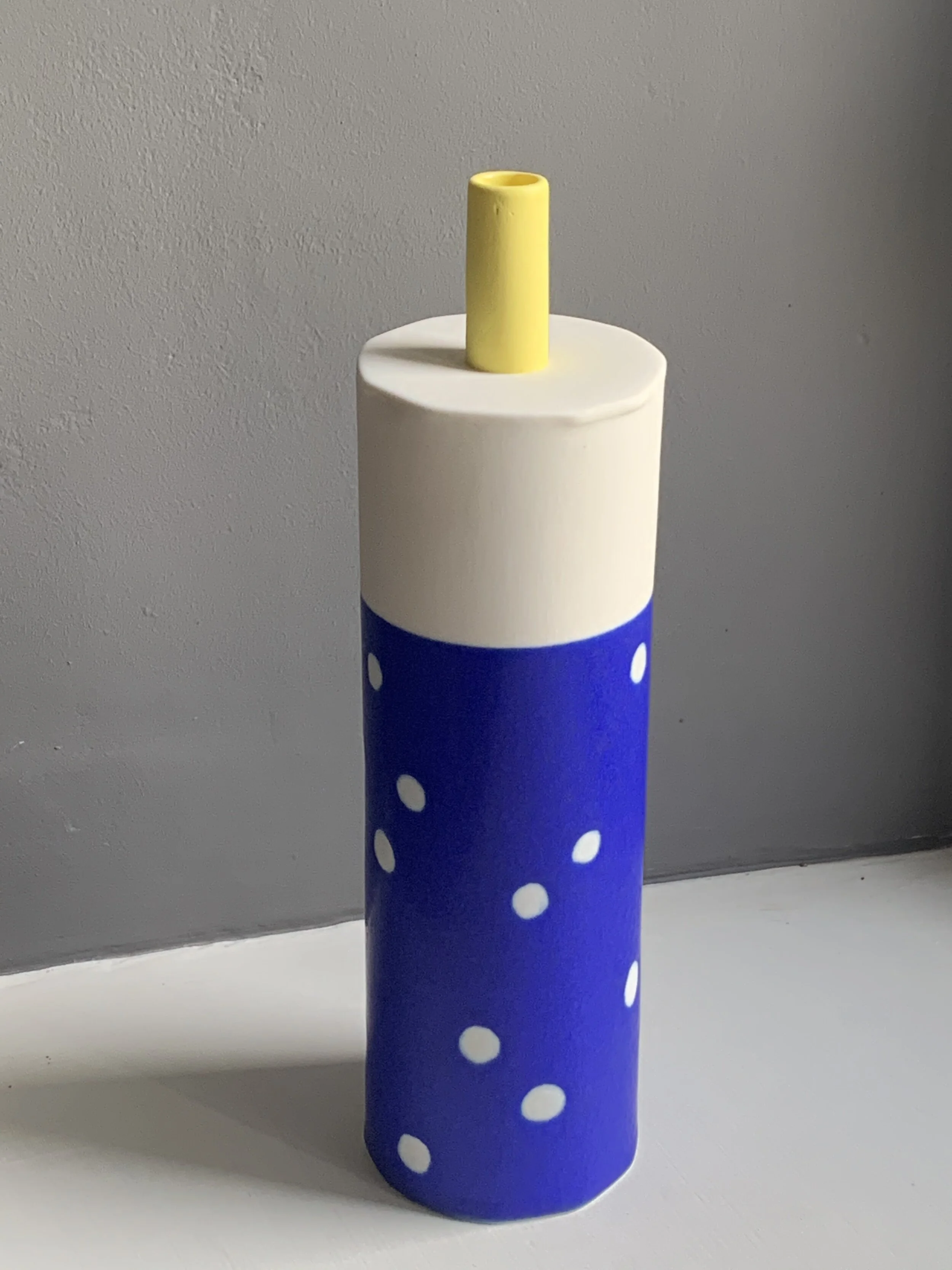 Blue painted porcelain with a yellow spout.