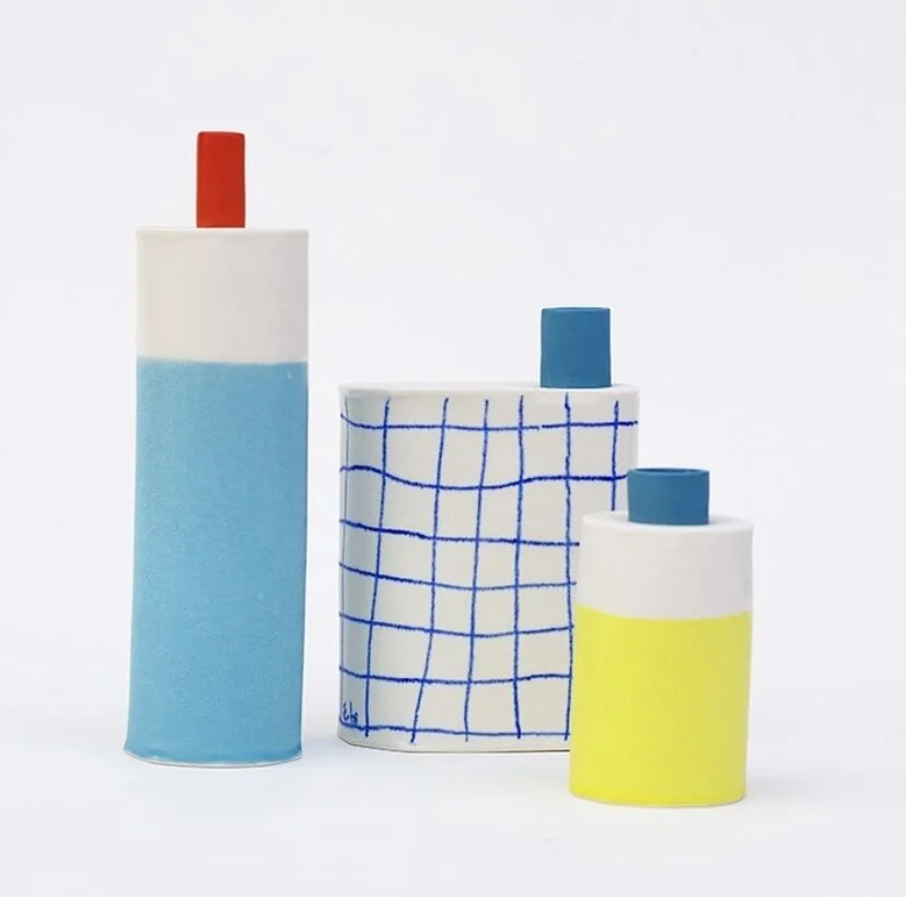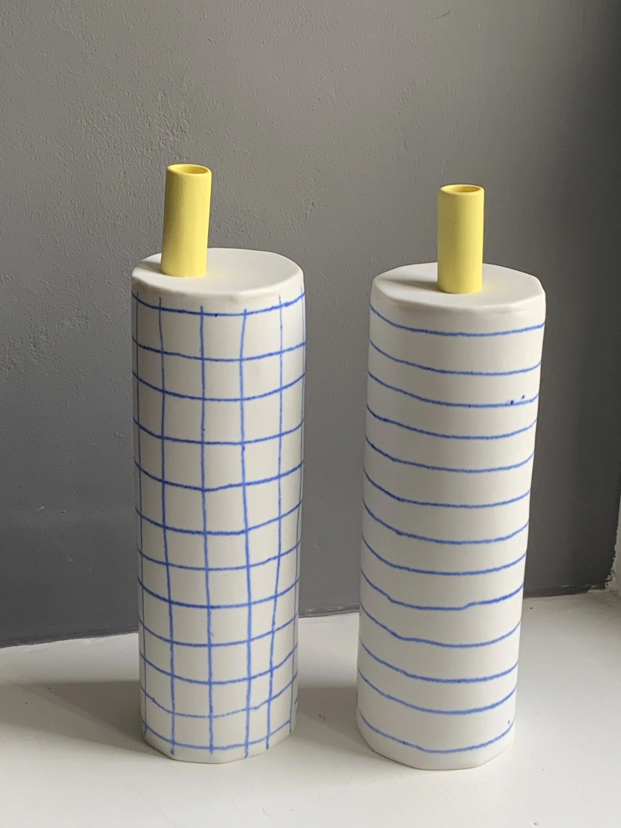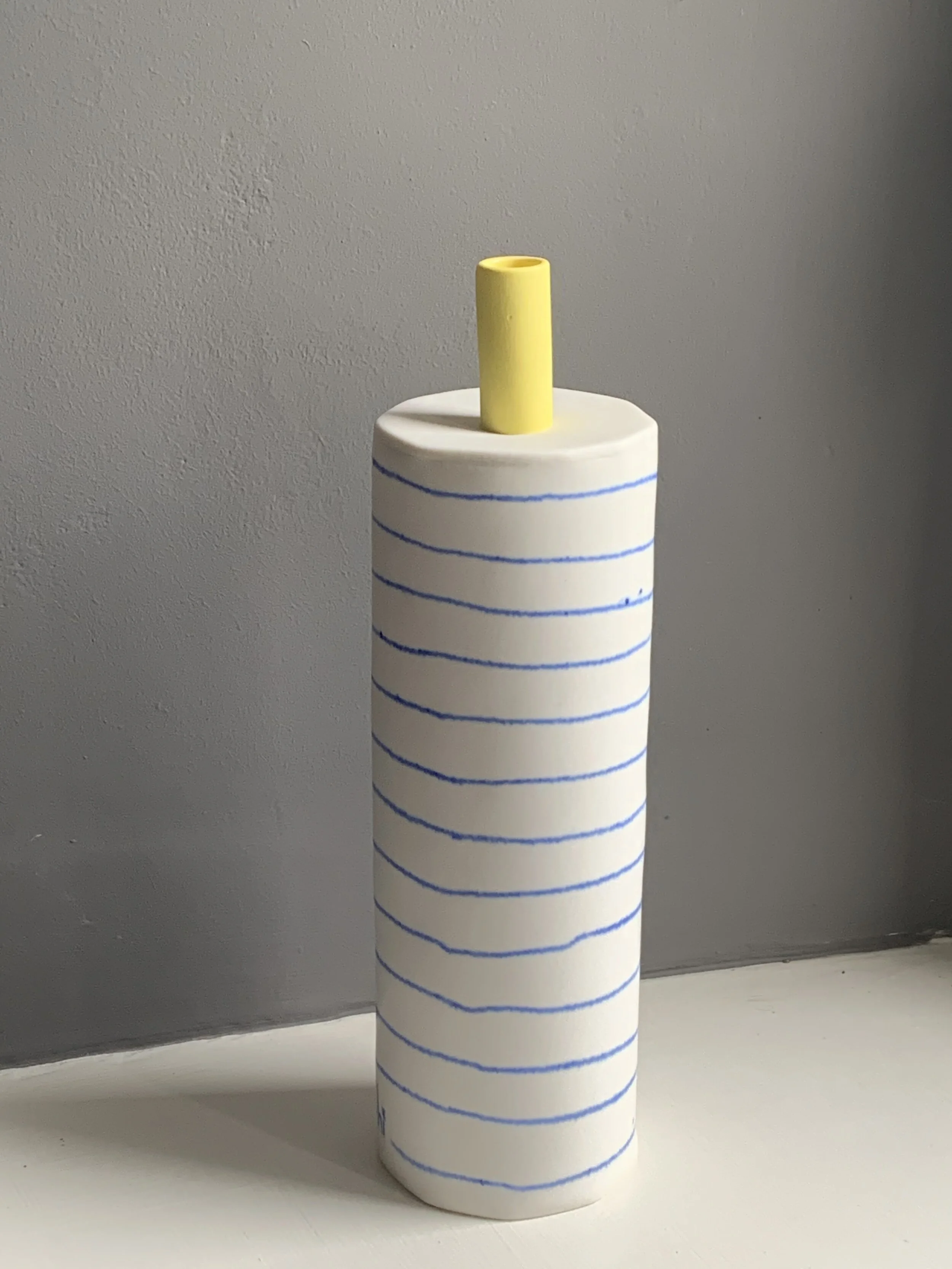 Blue painted porcelain with a yellow spout.